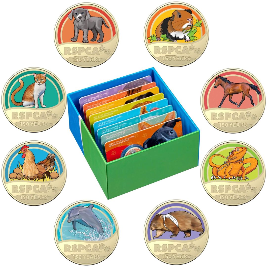 2021 $1 150th Anniversary of the RSPCA Australia Uncirculated Coloured 8 Coin Collection in Box