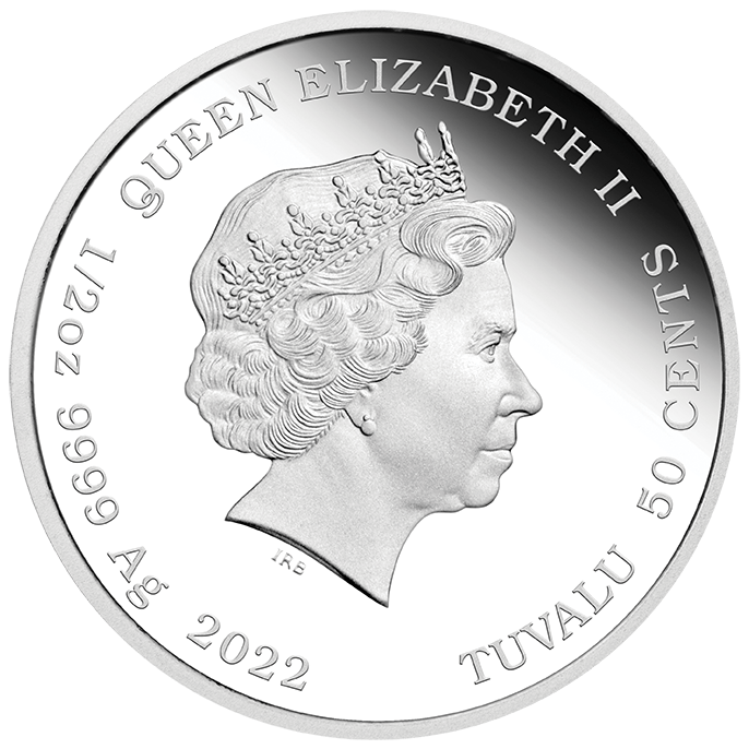 The Ian Rank-Broadley effigy of Her Majesty Queen Elizabeth II appears on the obverse with the coin’s weight, fineness, monetary denomination and 2022 year-date.