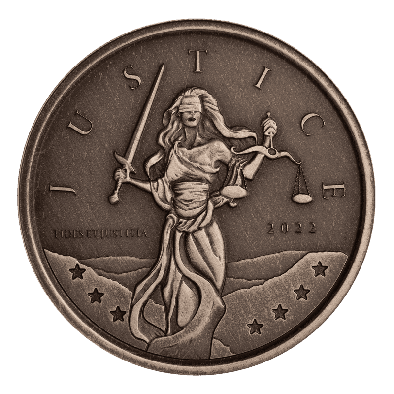 The figure of Lady Justice has been struck into coinage throughout world history, with one of the earliest examples appearing in the Roman Empire around 100 AD. The ideal of pure, impartial justice is timeless, and a concept people have sought, debated, and fought to preserve over the timeline of humanity.