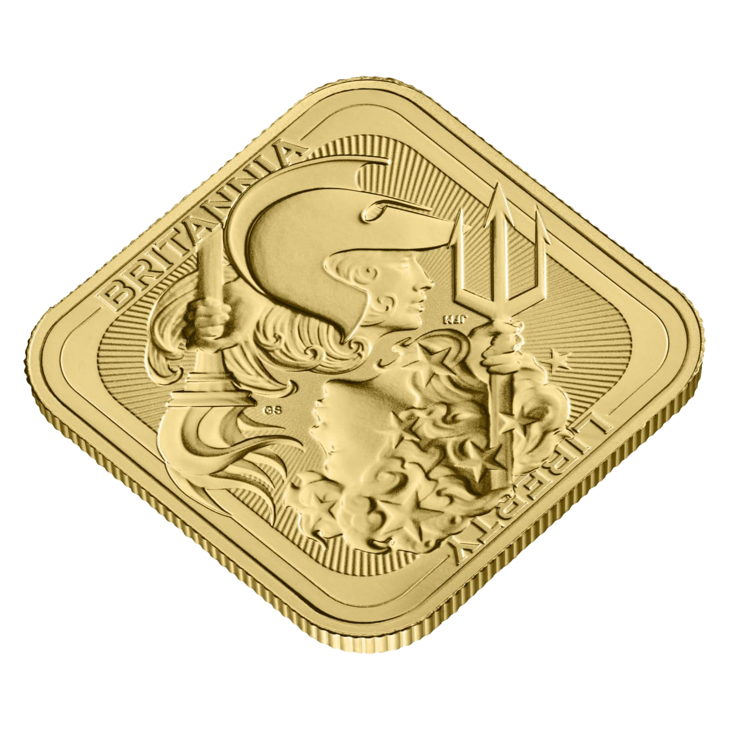 Marking a new era in bullion design, the Britannia and Liberty one-ounce gold bullion bar represents a fusion of two iconic symbols on a square-shaped bar.