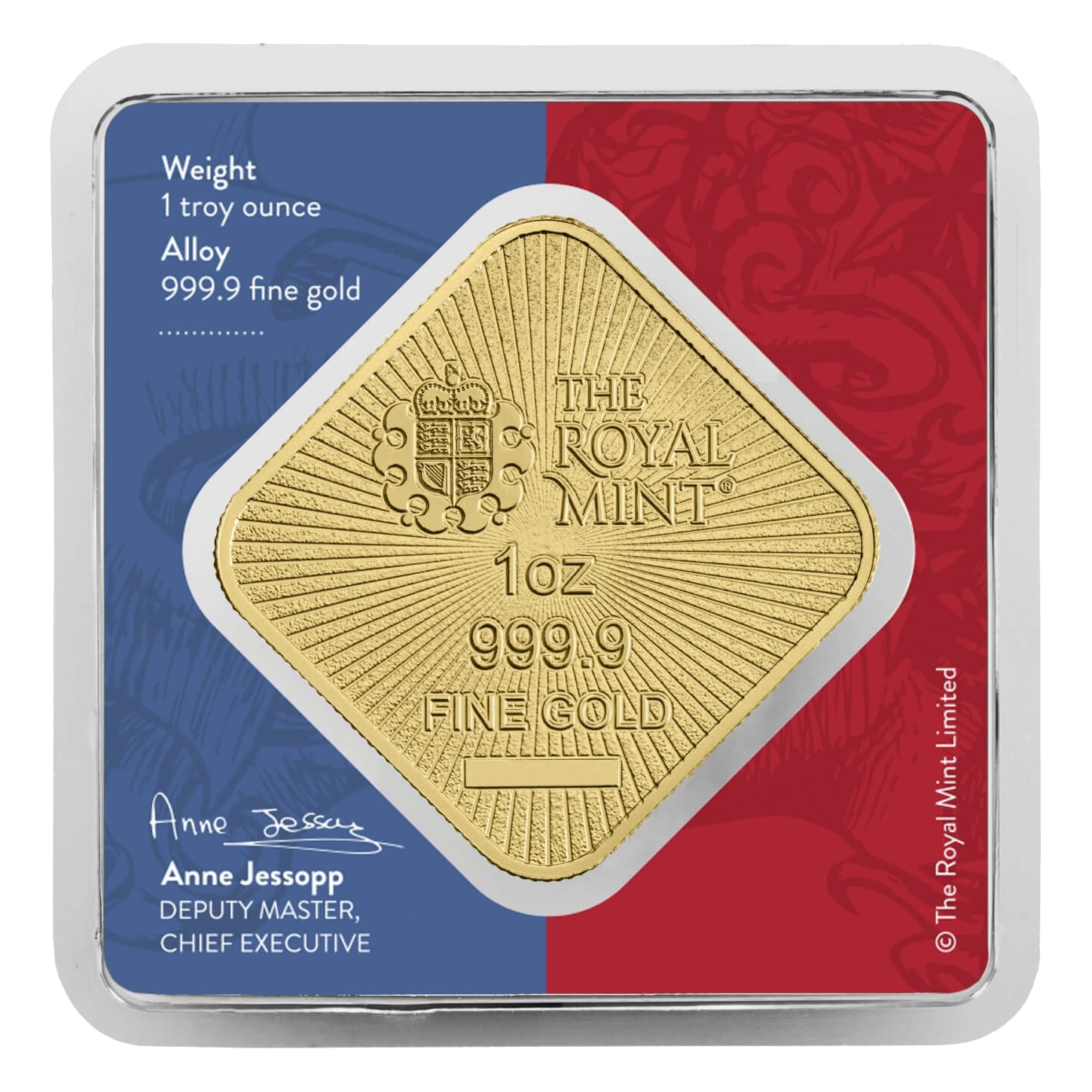 Made with 999.9 fine gold, this limited-edition bar is a testament to the partnership between The Royal Mint and the United States Mint. Its distinctive square shape underscores its uniqueness in the market, offering investors and collectors an opportunity to own a one-off piece.
