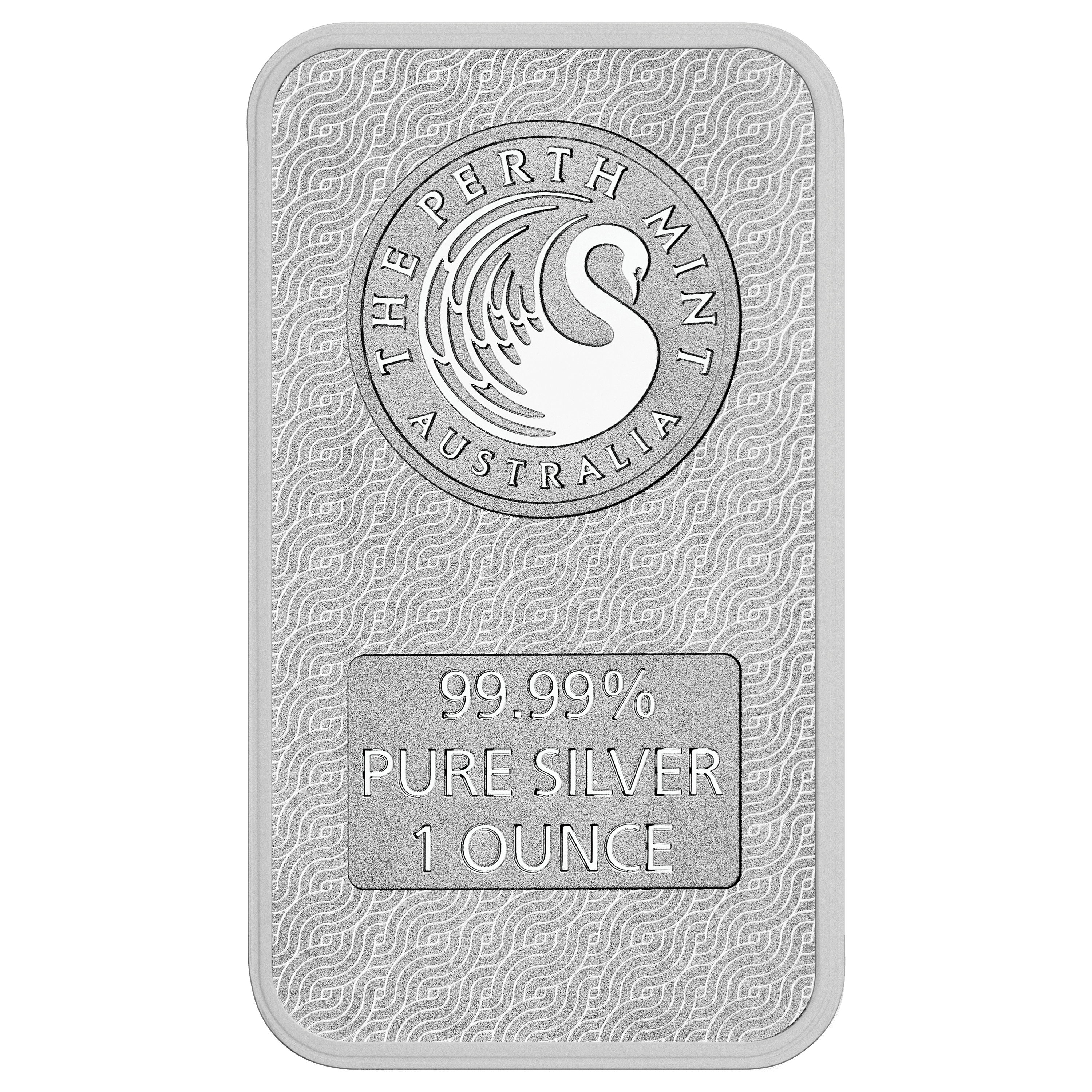 The back of the bar is stamped with The Perth Mint’s London Bullion Market Association registered mark, a stylised swan symbolising The Perth Mint’s 125 year-old reputation for quality. The logo and the bar’s weight and fineness appear on the same background pattern