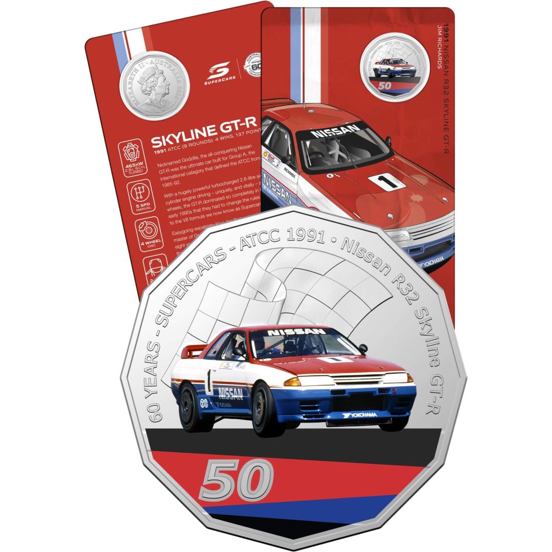 2020 50c 1991 Nissan R32 Skyline GT-R – 60 Years of Supercars Coloured Coin in Card