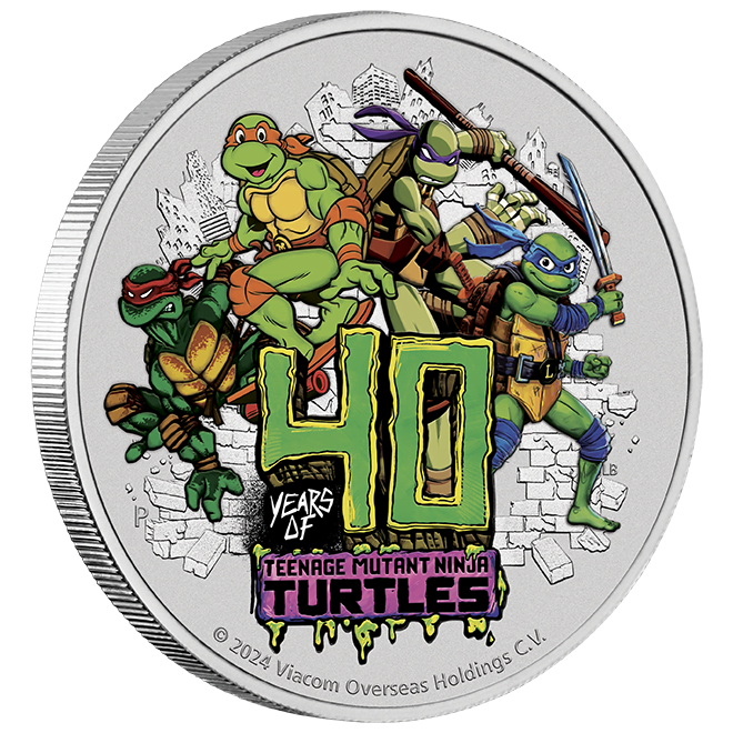 2024 Teenage Mutant Ninja Turtles 40th Anniversary 1oz Silver Coloured Coin in Card