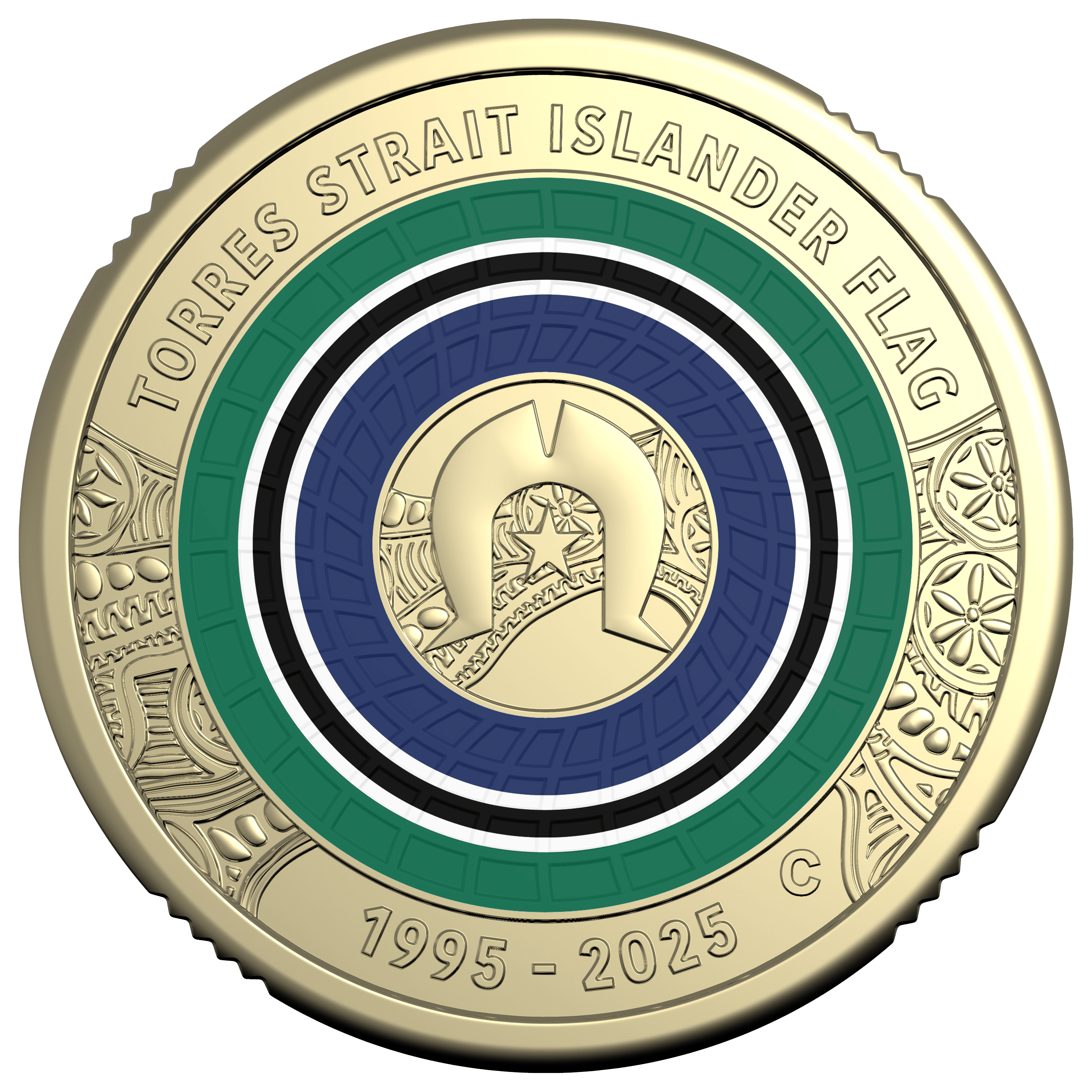 The Royal Australian Mint commemorates this significant anniversary with the release of this stunning 2025 $2 ‘C’ Mintmark Coloured Uncirculated Coin, which celebrates the enduring legacy of the flag and honours the rich traditions, history and contributions of Torres Strait Islander communities across Australia.