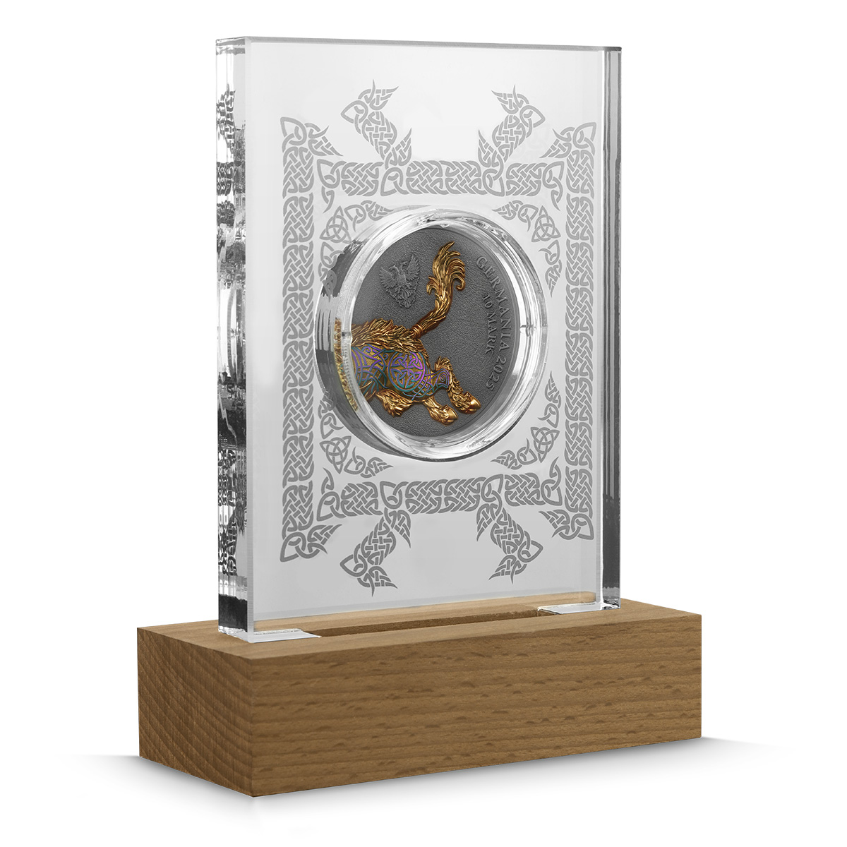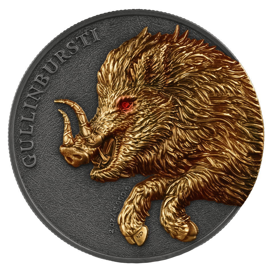 According to Germanic mythology, Gullinbursti was forged by the dwarves Sindri and Brokkr as a gift for the god Freyr. Its golden bristles not only illuminated the darkness but also made it incredibly fast and indestructible. On this unique coin, Germania Mint has given it an even more majestic appearance – its tusks are adorned with ancient runes, endowing it with magical power and mystical significance.