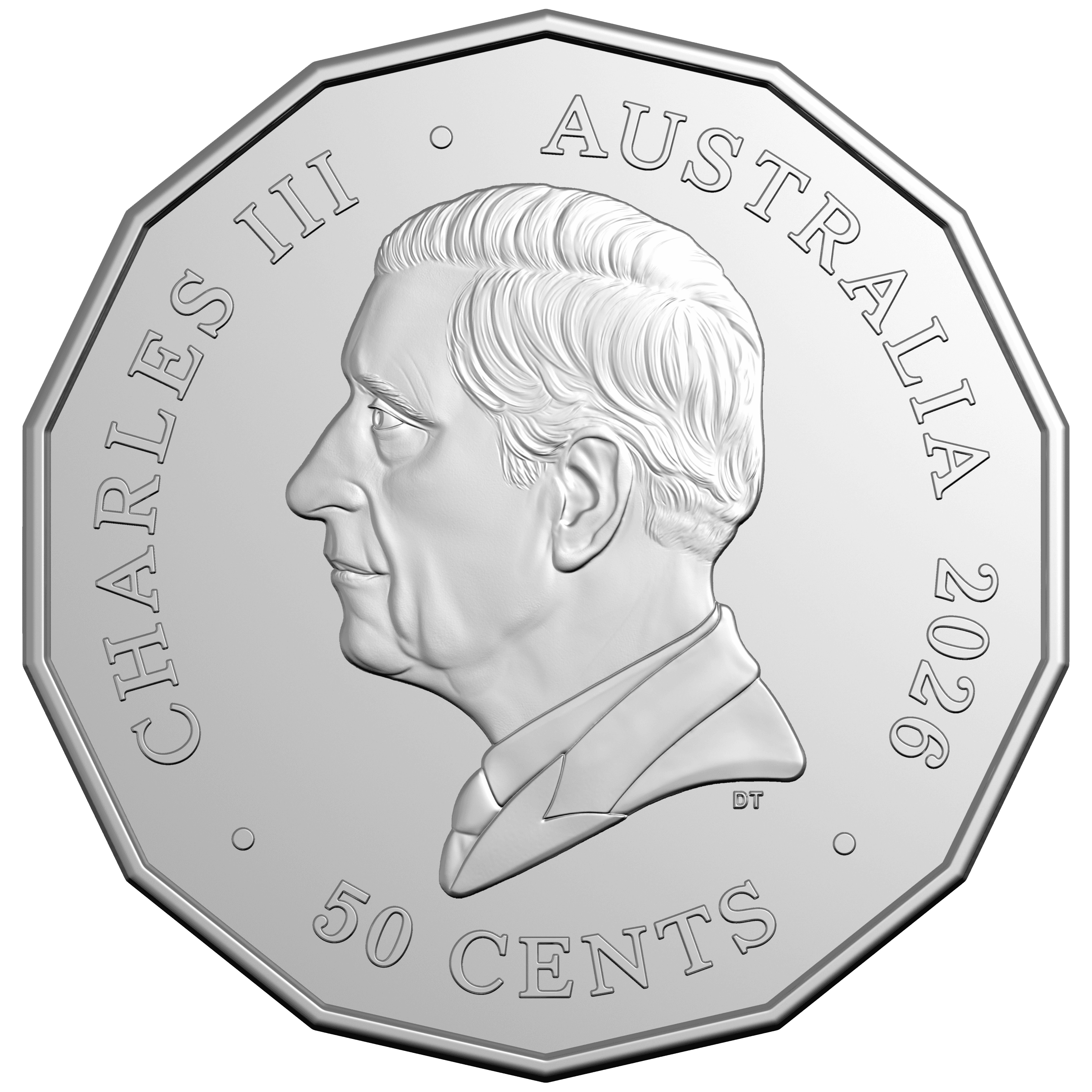 The obverse features the effigy of His Majesty King Charles III sculpted by Daniel Thorne as well as the monetary denomination and 2026 year-date.